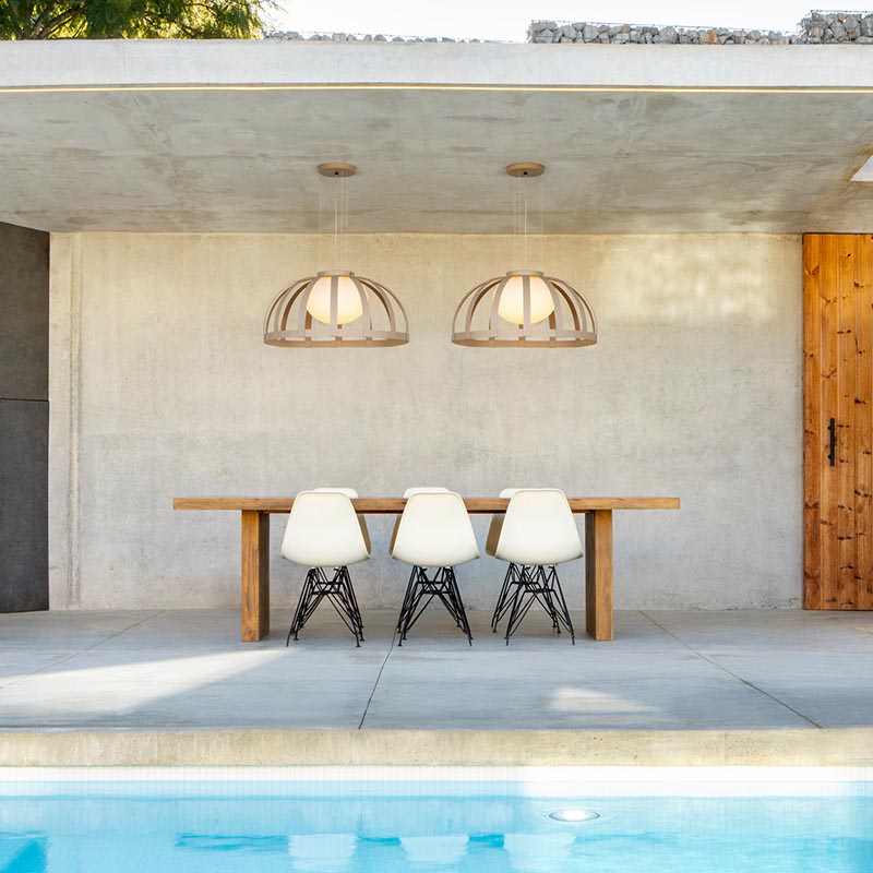 Die Bols T-4025X Pendelleuchte von Estiluz verbindet mediterranen Charme mit modernem Minimalismus und ist sowohl für den Innen- als auch Außenbereich konzipiert. Entworfen vom renommierten Designstudio Mermelada Estudio, wird die Leuchte durch ihre weichen Linien und die warme Lichtstimmung zum atmosphärischen Mittelpunkt von Gärten, Terrassen, Veranden, Bars oder auch stilvollen Innenräumen.