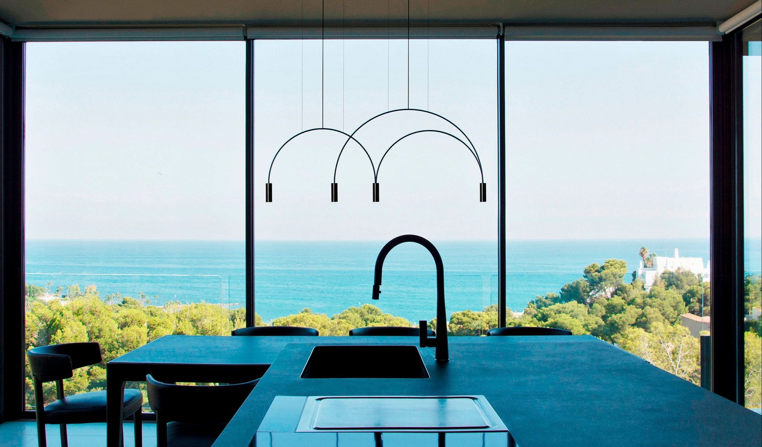 Die Pendelleuchte Volta L78S.1D1T von Estiluz vereint modernes Design mit innovativer Lichttechnik. Sie besteht aus einem Metallkörper mit fünf zylindrischen Aluminiumköpfen, die mit Acryl-Linsendiffusoren (PMMA) ausgestattet sind. Diese Kombination sorgt für eine gleichmäßige und angenehme Beleuchtung. Die Leuchte ist in den Ausführungen Schwarz und Gold erhältlich und fügt sich harmonisch in verschiedene Wohnstile ein.