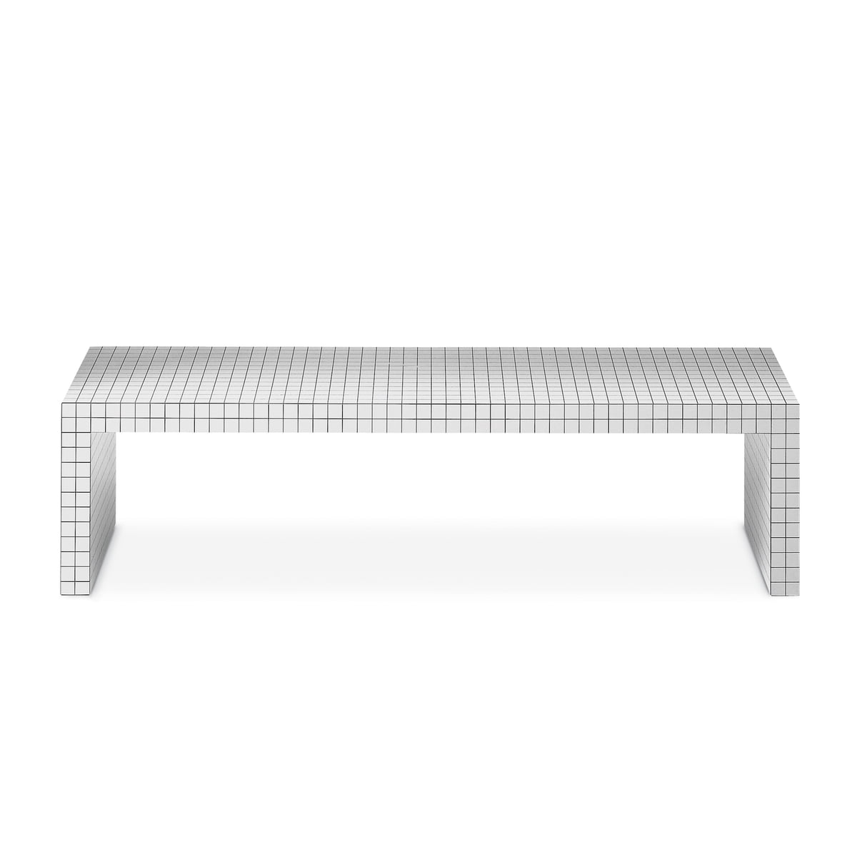 Die Quaderna Bank überzeugt durch ihre puristische Materialwahl und die präzise handwerkliche Ausführung. Die Konstruktion aus drei rechtwinklig angeordneten Sperrholzplatten, vollständig überzogen mit weißem Schichtstoff und dem charakteristischen schwarzen Siebdruckraster im 3-cm-Linienabstand, schafft eine faszinierende visuelle Kontinuität und außergewöhnliche Tiefenwirkung. Mit idealen Maßen von 150 cm Länge, 42 cm Tiefe und 39 cm Höhe bei einem Gewicht von 18 kg bietet sie vielseitige Einsatzmöglichkeiten – ob als Couchtisch, Sitzbank oder skulpturales Objekt. Die hochwertige Produktion durch Zanotta in Italien, einem der führenden Hersteller für modernes Design, garantiert höchste Qualitätsstandards. Die Quaderna Bank fügt sich nahtlos in minimalistische wie expressive Wohnkonzepte ein und lässt sich perfekt mit weiteren Elementen der Quaderna Serie wie Wandtisch oder Schreibtisch kombinieren. Ein Stück Designgeschichte, das die Ideale einer Ära des Aufbruchs verkörpert und zugleich zeitlos modern bleibt.